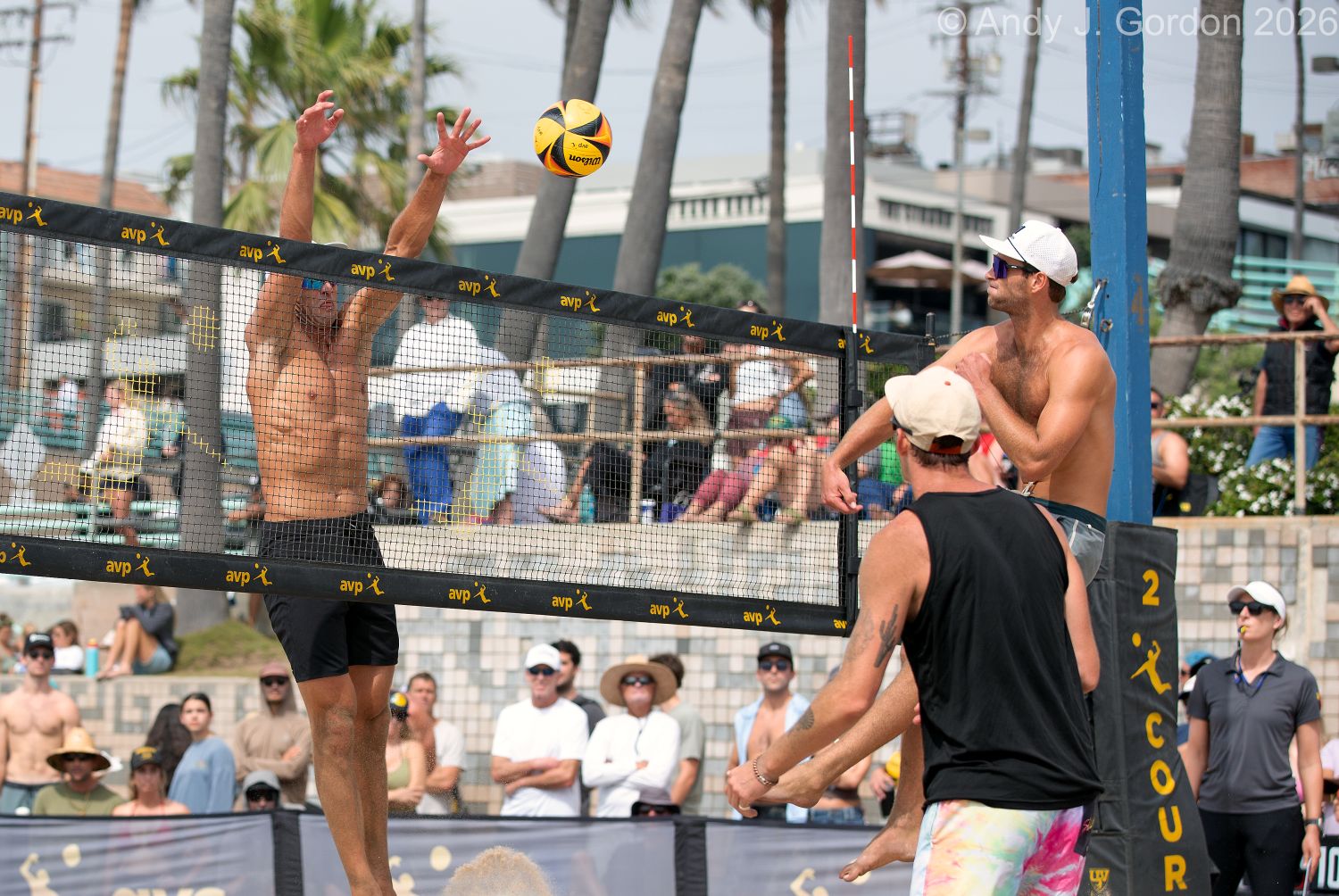 Wyatt Harrison hitting vs Paul Lotman at the AVP Qualifier at Manhattan Beach Pier on March 28 2026 by Andy J Gordon
