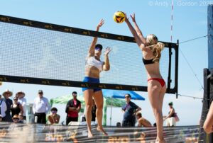 Hailey Harward hitting vs Ally Batenhorst at the AVP Qualifier #2 in Manhattan Beach on April 4 2026 by Andy J Gordon