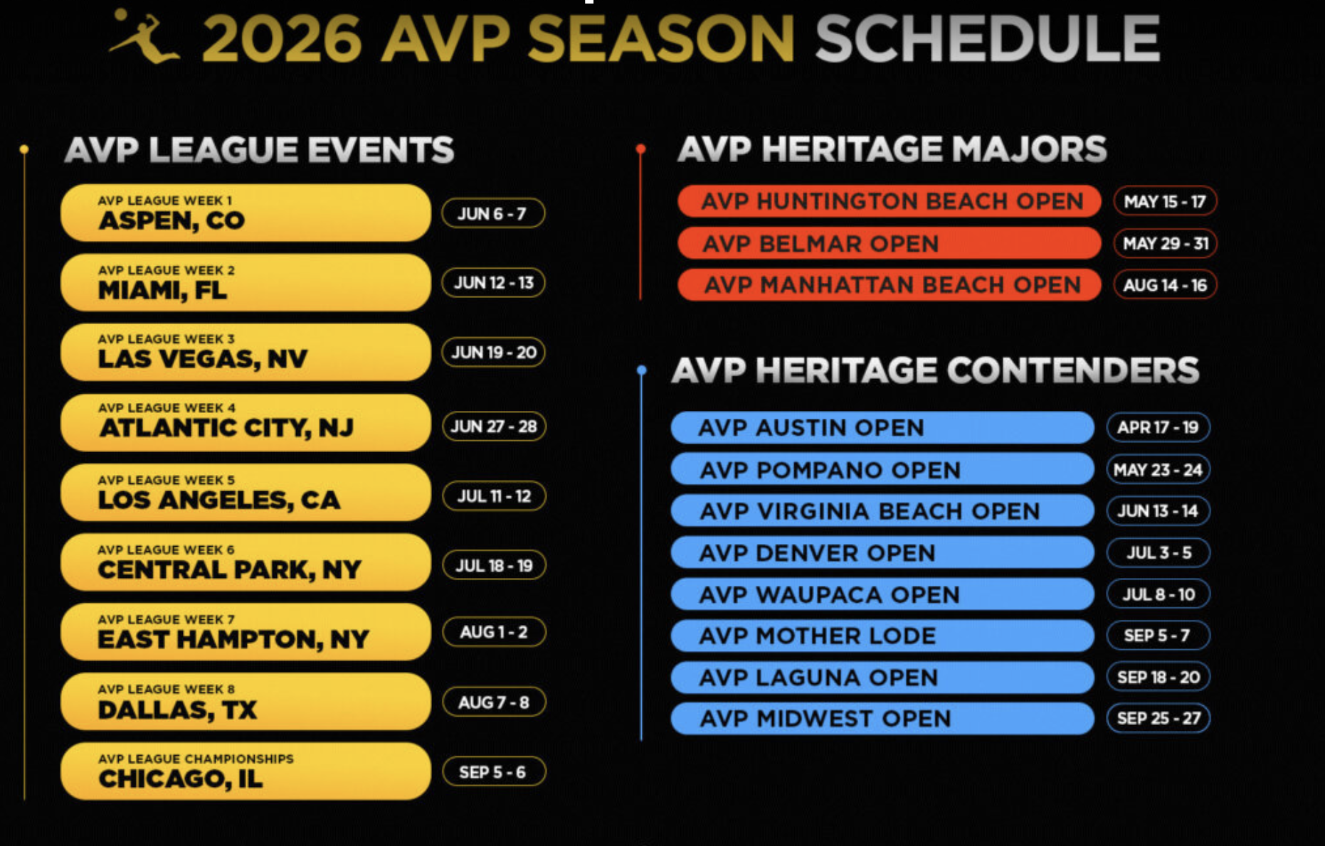 Tri Bourne and Travis Mewhirter take a look at the 2026 AVP Schedule and offer their thoughts on the AVP League, the AVP Heritage Events, and the AVP Contender events.