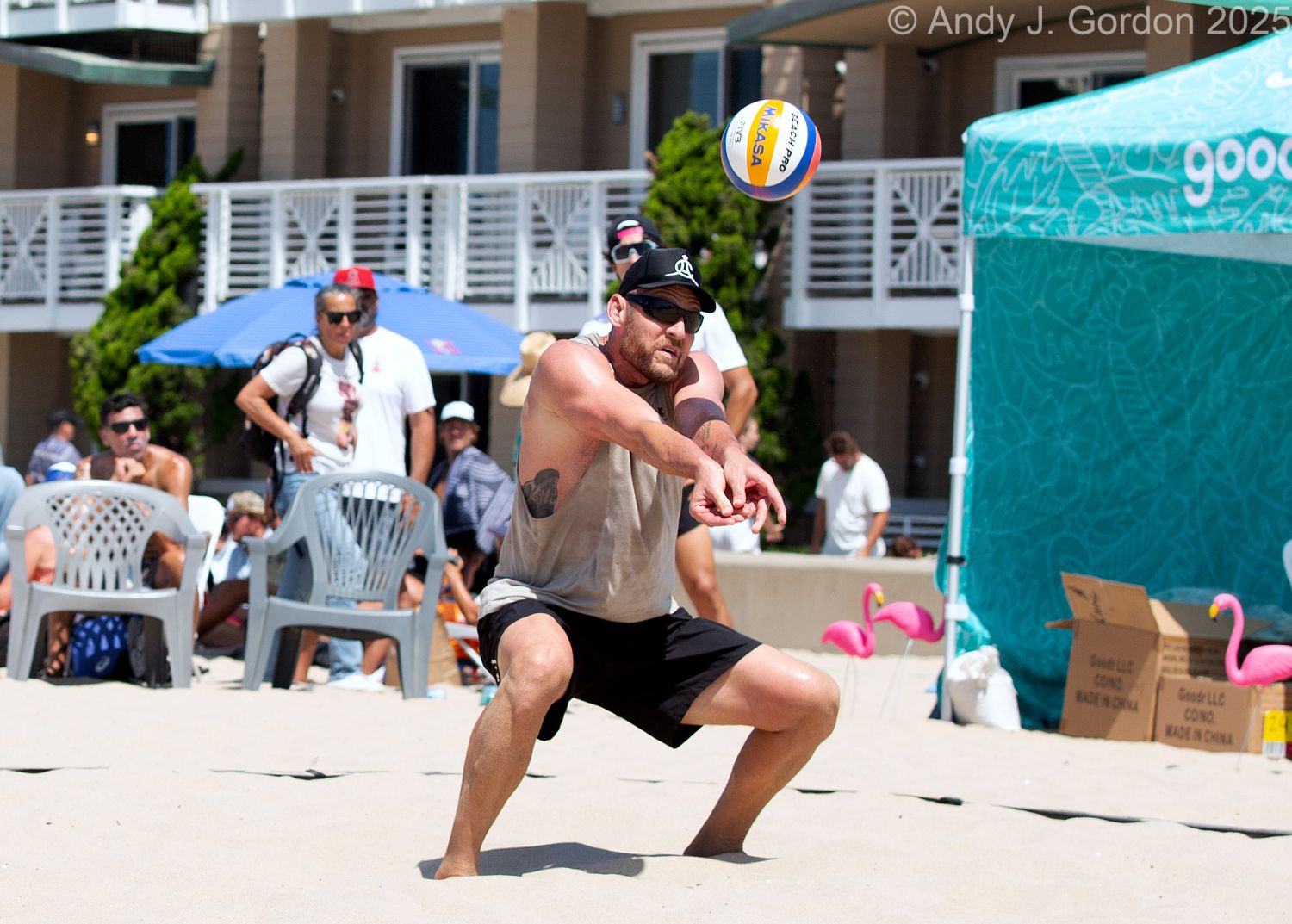 Alvaro digging at Hermosa Open 2025. Andy J. Gordon photo.