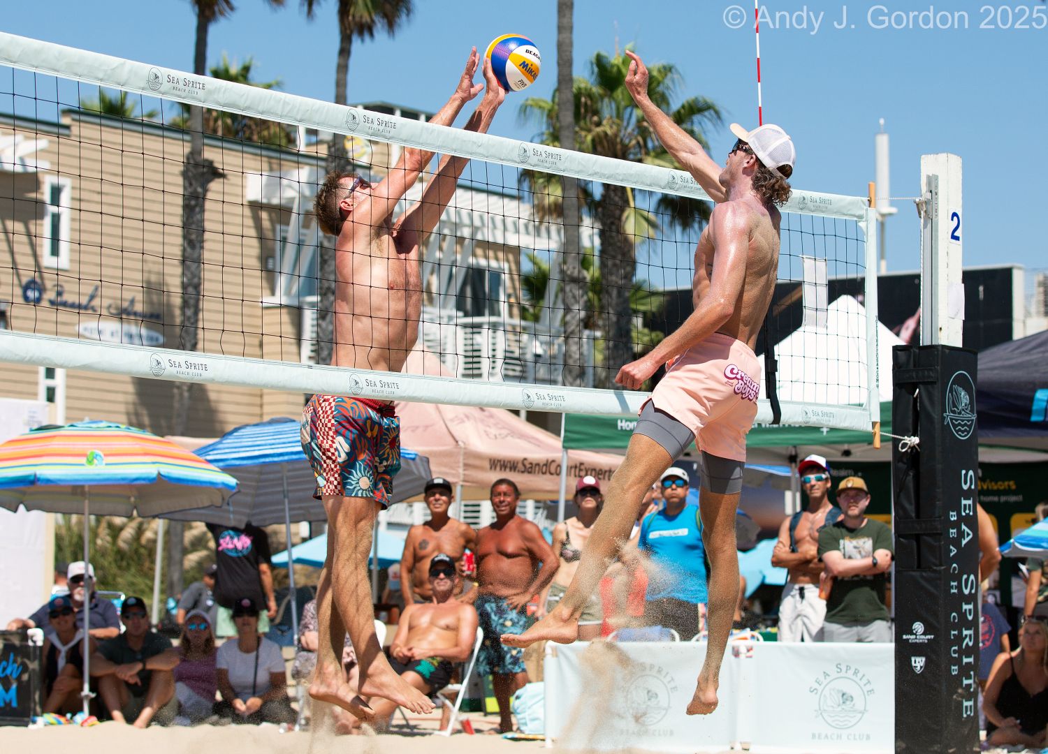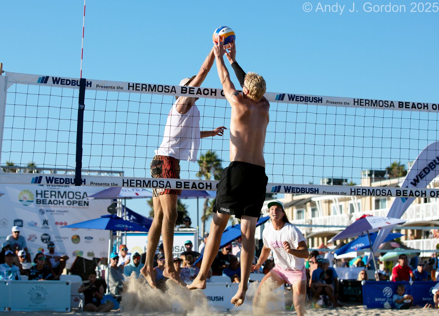 James Shaw hitting over Ben Saxton at Hermosa Open 2025. Andy J. Gordon photo.